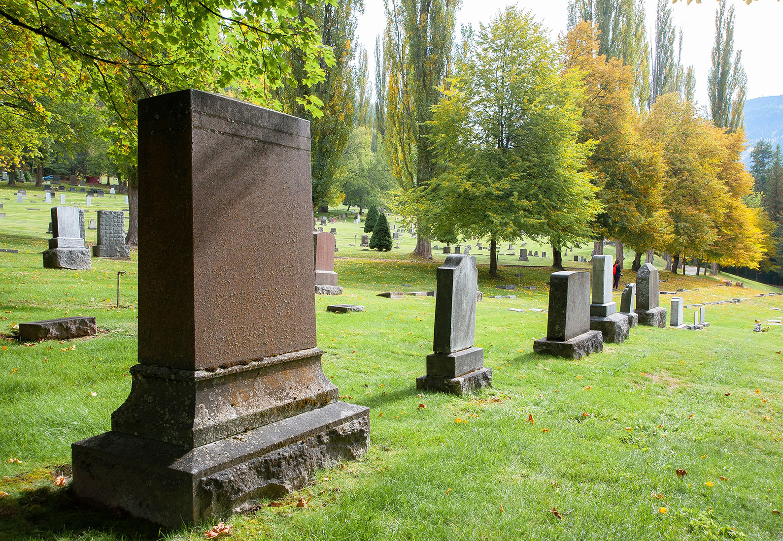 Autumn Brown Granite • 78”x30” overall 4 kerbs and attractive peon top posts, there is room on the chamfer of the kerb for an inscription..